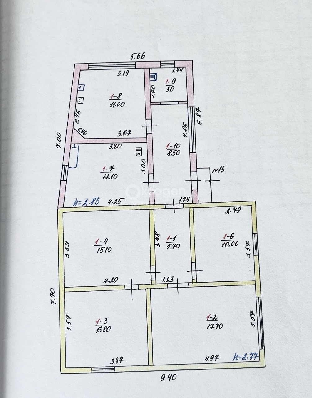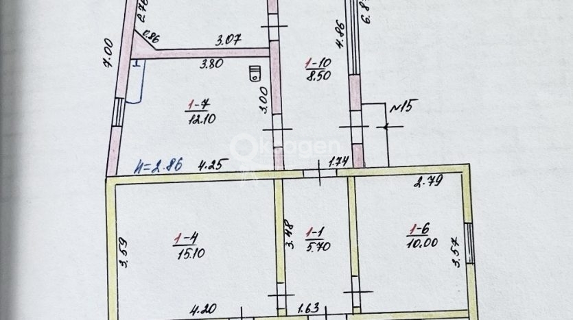В доме 4 комнаты: 18м2, 14м2, 15м2 и 10м2. Просторная кухня-столовая с обеденной зоной 11м2 и теплым полом. Очень большой санузел 12м2. Высота потолков 2.75м.