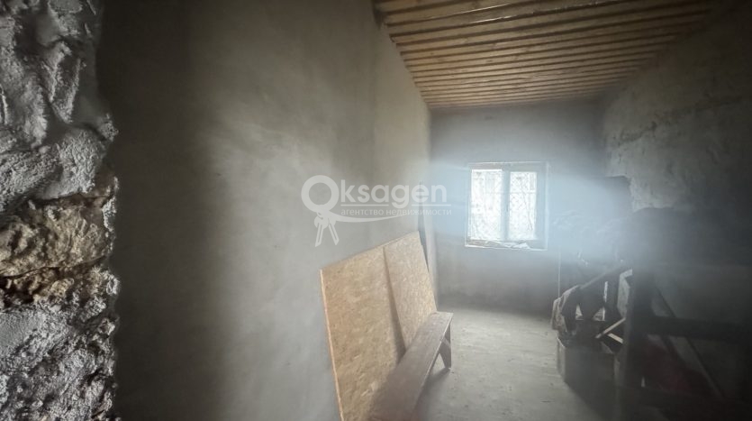 В доме стены выровнены и обработаны цементной стяжкой. Крыша утеплена. Газ, канализация к дому подведёны. Имеется собственная скважина, бассейн во дворе и по дороге проложен центральный водопровод.