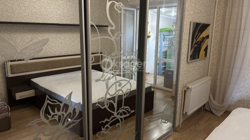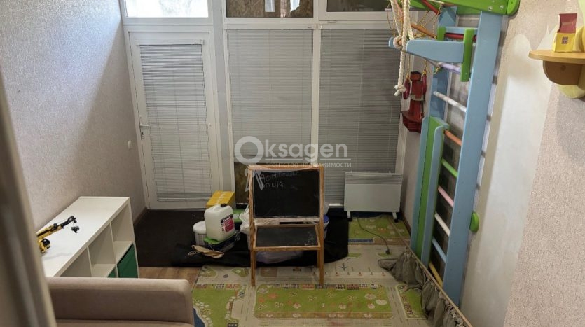 Расположена на 1 этаже, есть два отдельных входа. Балкон расширен и оборудован под детскую игровую комнату.